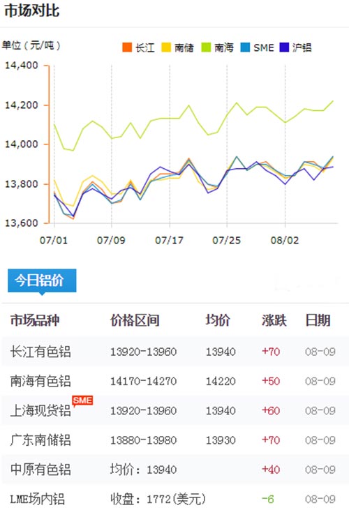 鋁錠價格今日鋁價2019-08-10