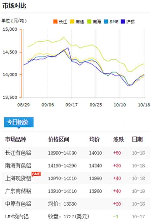 鋁錠價格今日鋁價2019-10-18