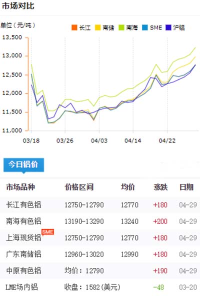 鋁錠價格今日鋁價2020-04-29