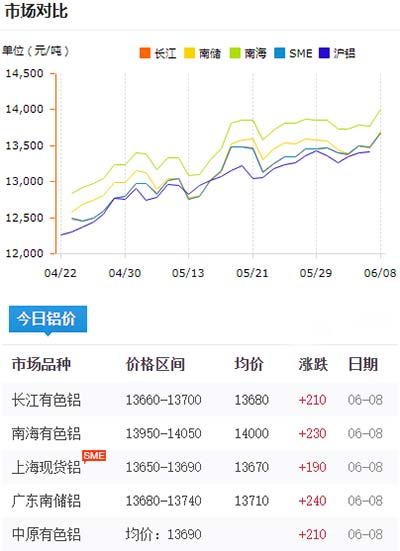 鋁錠價格今日鋁價2020-06-08