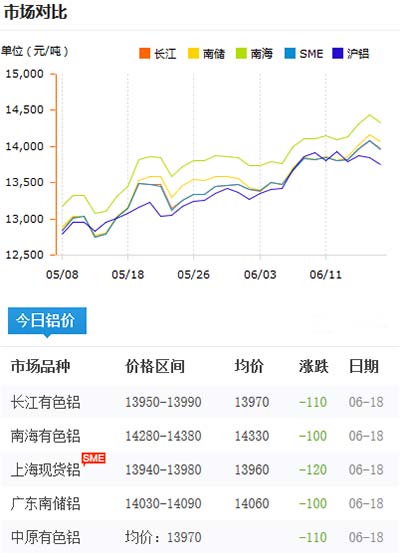 鋁錠價格今日鋁價2020-06-18