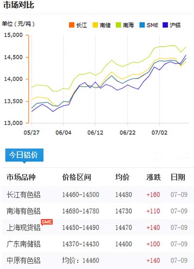 鋁錠價格今日鋁價2020-07-09