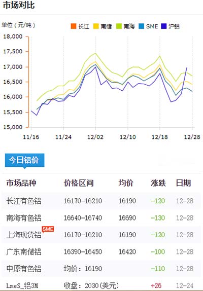 鋁錠價格今日鋁價2020-12-28