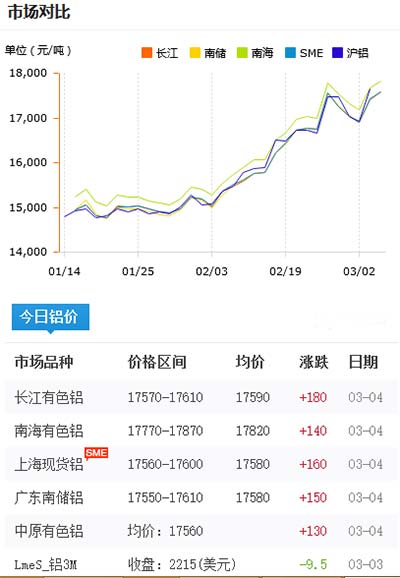 鋁錠價格今日鋁價2021-03-04