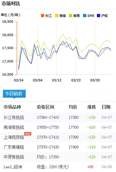 鋁錠價格今日鋁價2021-04-07