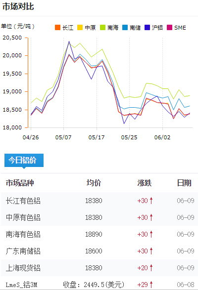鋁錠價格今日鋁價2021-06-09