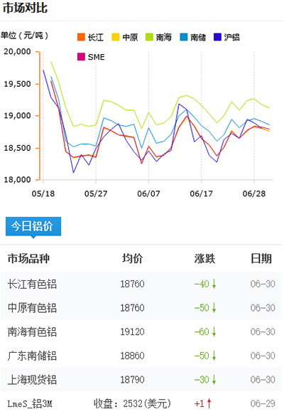 鋁錠價格今日鋁價2021-06-30