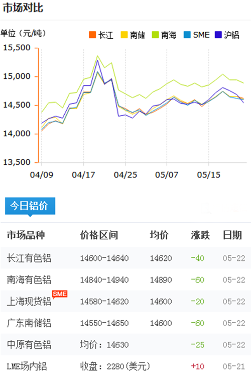鋁錠價格今日鋁價2018-5-22