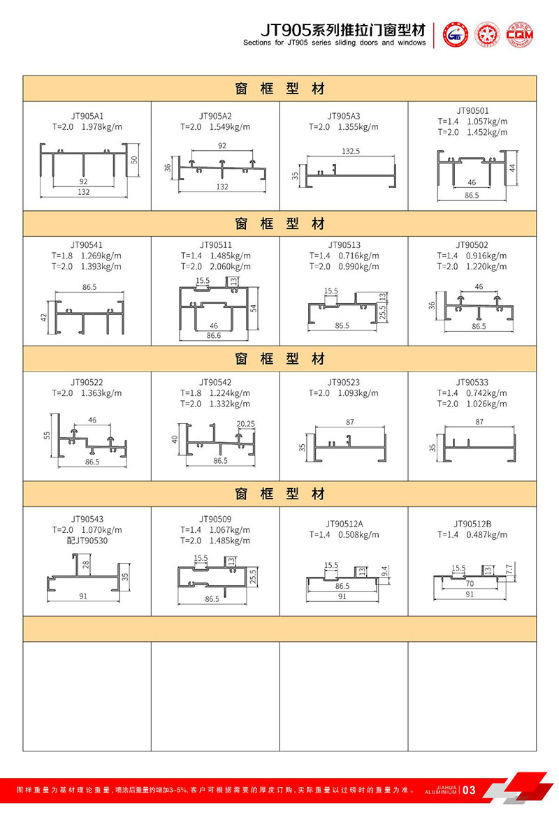 推拉窗系列 平開窗系列 平開門系列 斷橋隔熱系列 幕墻系列 通用型材系列