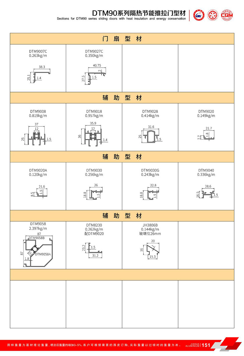 推拉窗系列 平開窗系列 平開門系列 斷橋隔熱系列 幕墻系列 通用型材系列