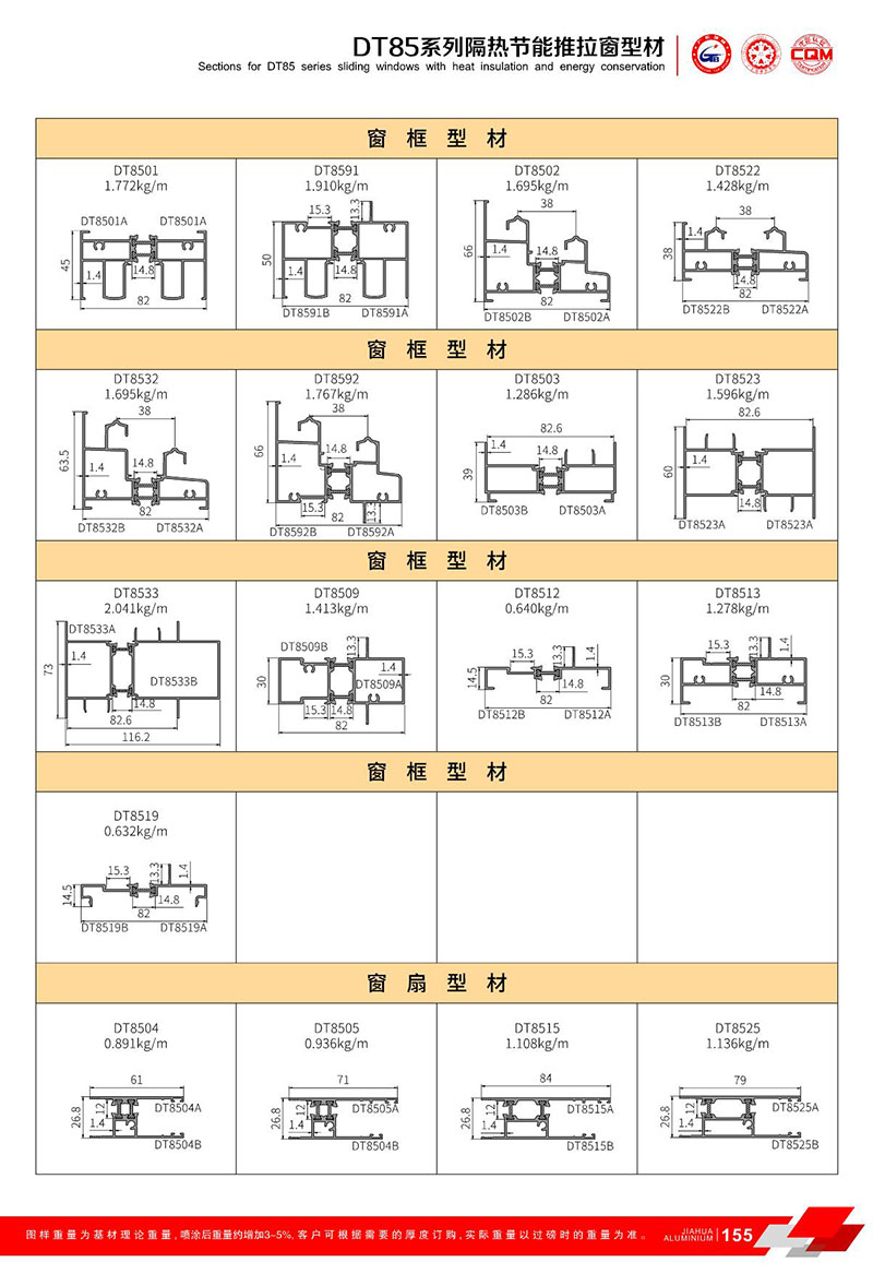 鋁型材規(guī)格型號:DT85推拉系列 A