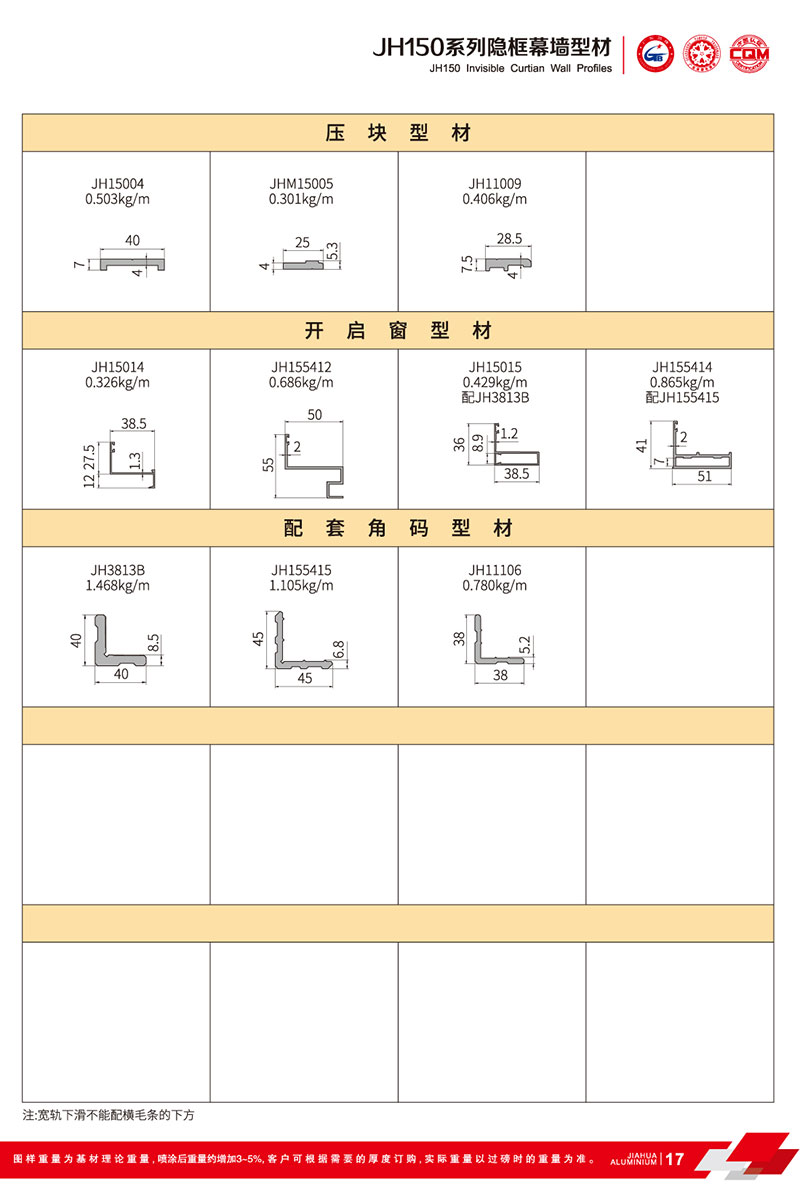 鋁型材規格型號:JH150 A