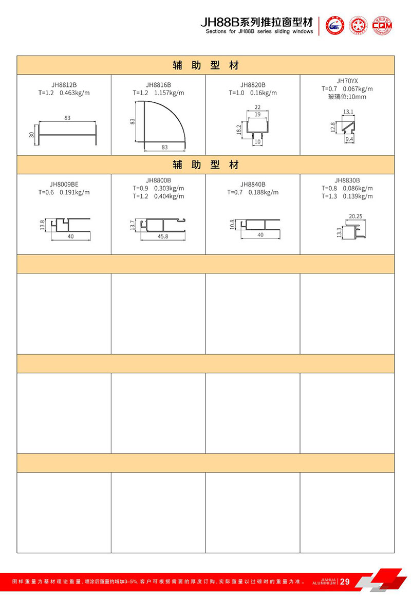 推拉窗系列 平開(kāi)窗系列 平開(kāi)門(mén)系列 斷橋隔熱系列 幕墻系列 通用型材系列