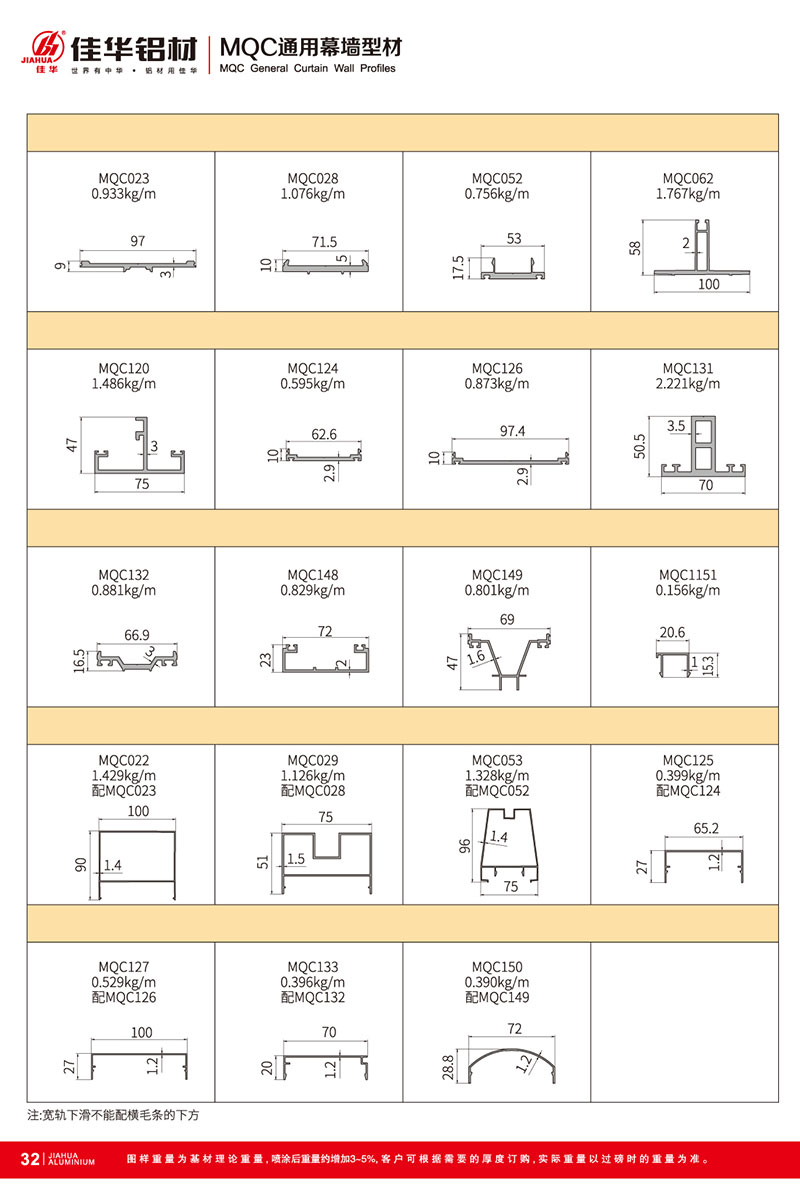 鋁型材規(guī)格型號:MQC通用幕墻型材
